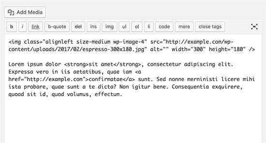However, many advanced users prefer to use the plain text editor. It has some very basic formatting buttons and shows raw HTML / plain text when you create content.